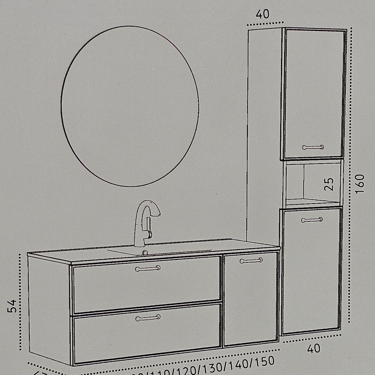 ארון אמבטיה תלוי בעל עיצוב מודרני חלוקה ל- 2 מגירות ודלת
